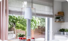 • Прозрачная рулонная штора в проем выполняют декоративную функцию, пропускает максимум света и хорошо рассеивает световой поток, снижая его яркость.