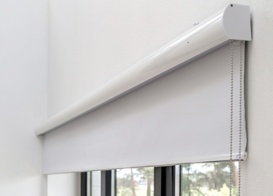 • Закрытая система (кассетная). Вал спрятан в специальном коробе, который скрывает рулон в сложенном виде. По бокам полотна могут идти направляющие для лучшего прилегания к стеклу.