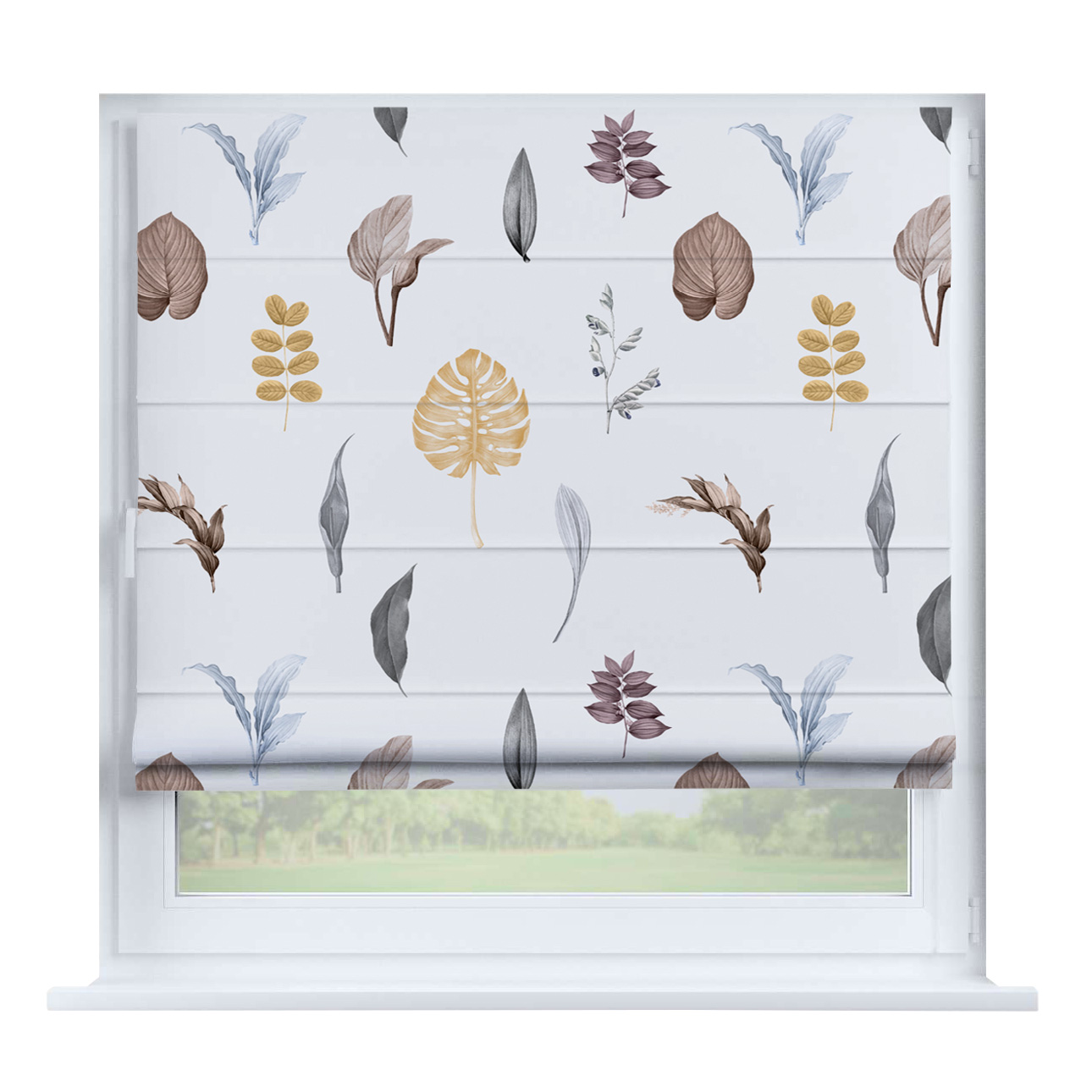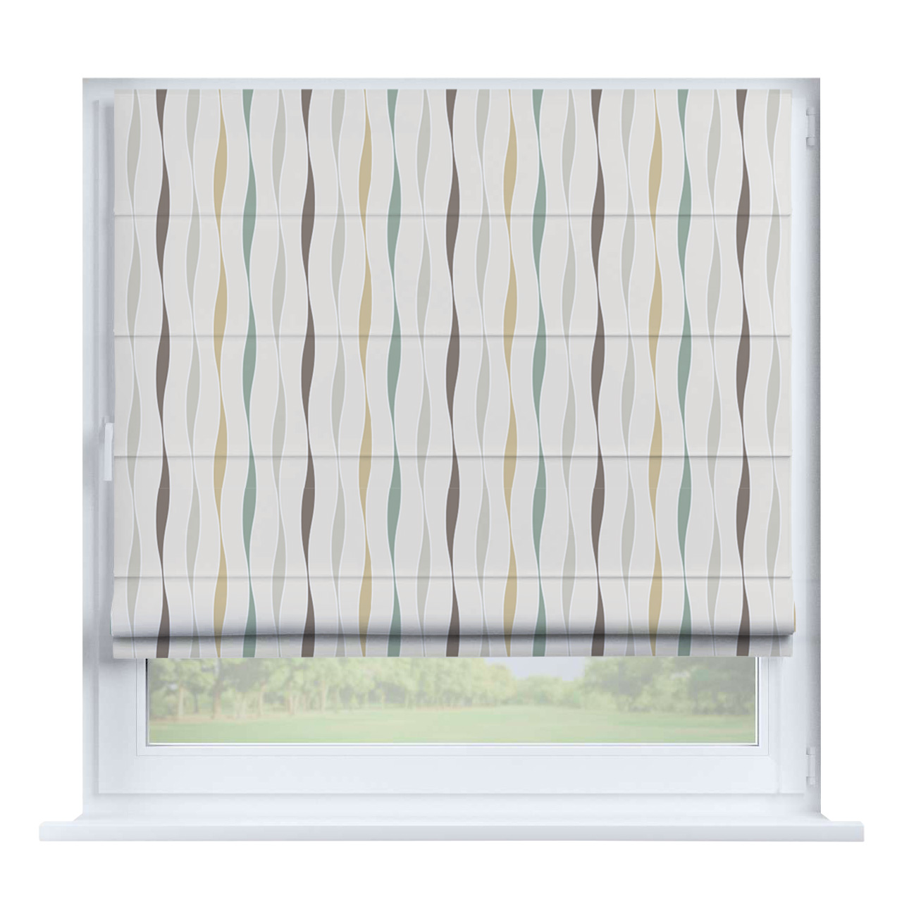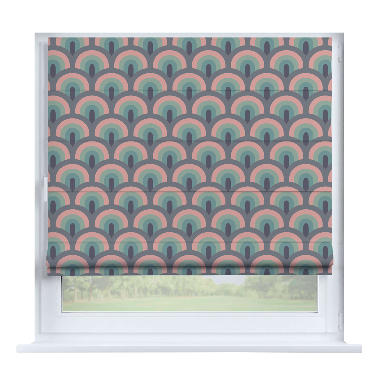 Римская штора для проёма «Лесистая местность», карниз верёвочный